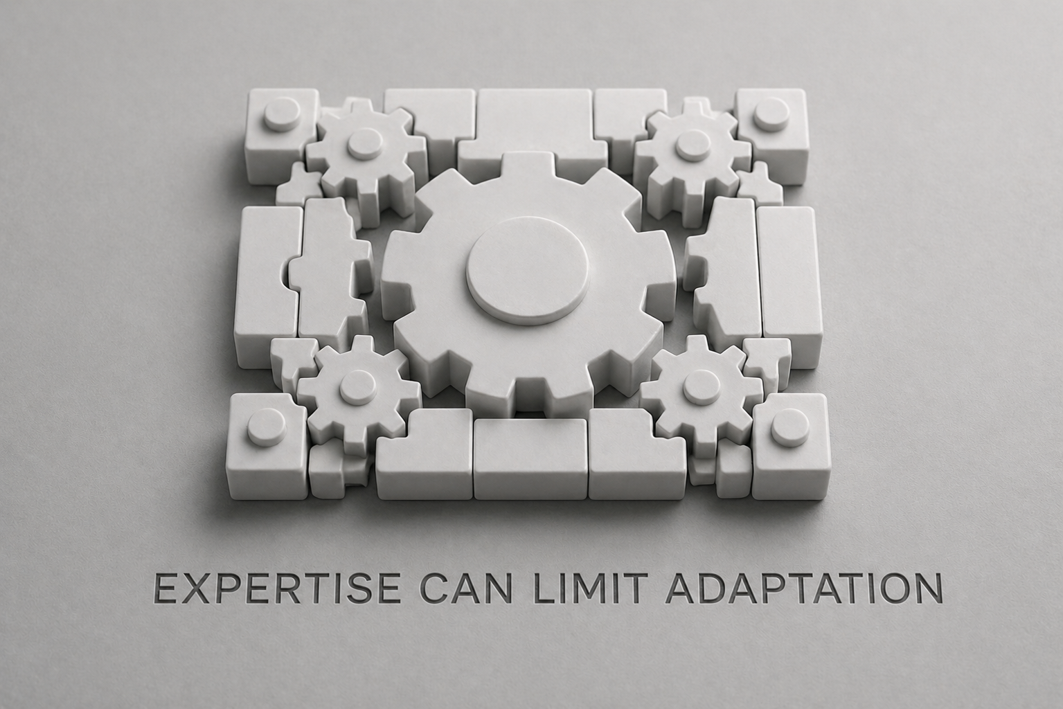 You see this play out in three distinct ways inside growing companies. The first is in senior leadership teams, where experienced hires arrive with proven playbooks and the confidence those playbooks deserve, only to spend their energy fitting the business to their model rather than adapting their model to the business. The second is in specialists, where a finance leader optimizing for control, a sales leader optimizing for revenue, and an operations leader optimizing for efficiency each develop a lens that is locally valid but collectively fragmenting. Every function reinforces its own logic, and alignment quietly erodes. The third place, and the most important one, is in you. Founders are usually the deepest experts in the room. Your pattern recognition is real. Your instincts have been right more times than not. But those same strengths create the blind spots that are hardest to catch, because they are the assumptions nobody challenges and the decisions that feel the most obvious.
